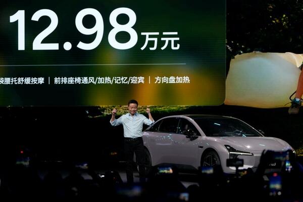 中国の自動車メーカー、シャオペンが発表した約260万円の新型EV(5月28日、写真:AP/アフロ)