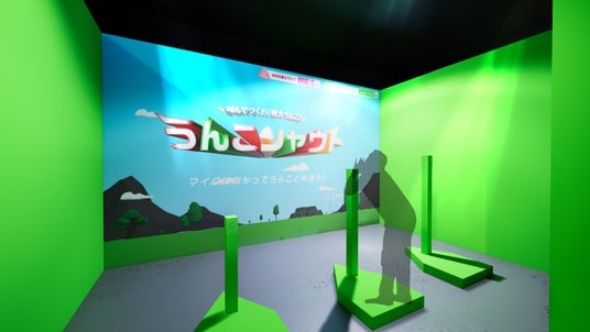 Hop! Step! Jumpoo!地面に映し出されたカラフルなうんこたちを追いかけ、思いきり踏んづける体感ゲームです。