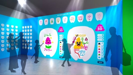 その様子は壁いっぱいに投影され、うんこカワイイ世界が広がっていきます。