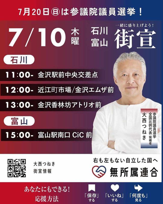 ※7/12(土)以降の各日の詳細は決定次第更新します。街宣は流動的ですので、スケジュールは変動の可能性がございます。あらかじめご了承ください。
