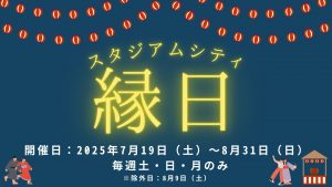 7月19日(土)~8月31日(日)までの、毎週土曜・日曜・月曜に、スタジアムシティ縁日を開催することが決定!