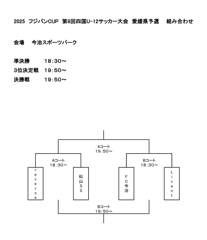 愛媛県サッカー協会4種委員会推薦の4チームでトーナメント。