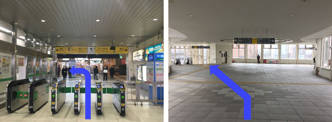 改札を出たら左へ進んで自由通路を西へ進んで下さい。
