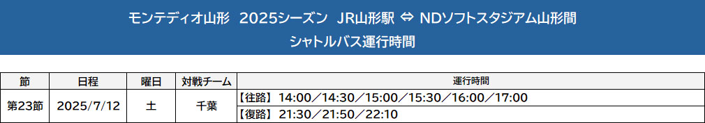 現在、2025明治安田J2リーグ モンテディオ山形のホーム開催試合におけるスタジアムへの交通手段として、シャトルバスの運行を実施いたしておりますが、今般の山形新幹線の車両故障に伴う臨時ダイヤに合わせて、シャトルバスの運行時間を変更いたします。