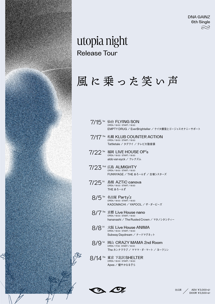 本作では、現代に生きる誰もが感じる喪失感や記憶の曖昧さが繊細に描かれる一方、サウンド面ではDNA GAINZならではの”心の奥底に響くロック”が鳴り響く。自然を用いた描写も印象的で、時間と記憶を超えた感情の流れを詩的に表現。彼らが掲げる「DNAから響く歌の鼓動 体の底から踊り出す」というテーマが、楽曲全体を通じて鮮明に感じられる。そんな新曲「utopia night」は、彼らの音楽的深化を示すと同時に、聴く者それぞれの”大切な記憶”と響き合う作品となっている。