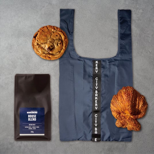 <セット内容>プレッツェルクロワッサン、チョコレートチャンククッキー(NYサイズ)、ハウスブレンドコーヒー(豆)200g、エコバック NV:¥3,000(税込¥3,300)