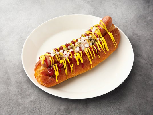 鉄板で焼き上げる、阿蘇自然豚ソーセージの「ホットドッグ」600(税込660)