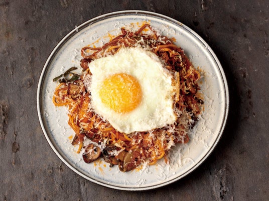 「〆の鉄板ナポリタン 目玉焼きのせ」900(税込990)