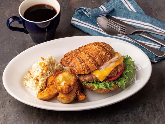 11時からのランチタイムは、シェフ渾身のワンプレートメニューが登場します。和牛のパテにプレッツェルクロワッサンの濃厚なバターが好相性の「プレッツェルクロワッサンバーガー」や、ベーカリーならではの風味豊かなバンズにビーフの旨味と肉々しさを存分に味わえる「ダブルチーズバーガー」など。アメリカンサイズのメニューを豪快に召し上がってください。
