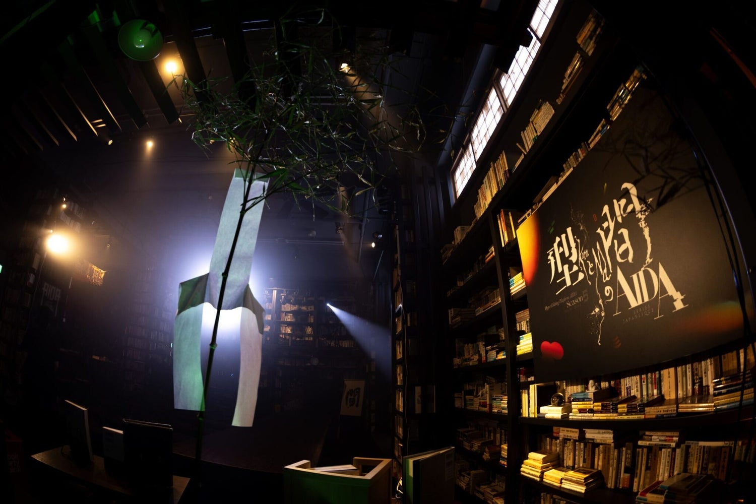 [AIDA]の会場でもある「本楼」(ほんろう:編集工学研究所ブックサロンスペース)にて対談を実施。左から吉村堅樹、安藤昭子。