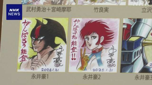永井ながいさんは、石川県いしかわけん輪島市わじましの出身しゅっしんで、漫画まんが「マジンガーZ」などで有名ゆうめいです。ことし4月がつ、永井ながいさんは地震じしんで被害ひがいのあった人ひとたちを助たすけたいと考かんがえて、オークションに絵えを出だしました。200人にん以上いじょうの漫画家まんがかも一緒いっしょに絵えを出だしました。このオークションで1億おく2300万まん円えんが集あつまりました。