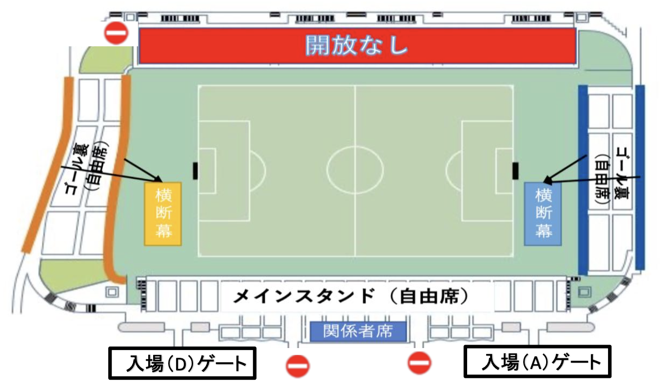 ・メインスタンド・ゴール裏スタンドのみ開放(バックスタンドは開放なし)
