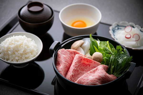 割り下には、それぞれの食材の持ち味を引き立てるために開発した、特製の「奈良の恵みの割り下」を使用。さらに、オリジナルブレンドの「すき焼きブレンド米」を合わせることで、肉・割り下・米が一体となった、奥行きのある旨みを楽しむことができる。