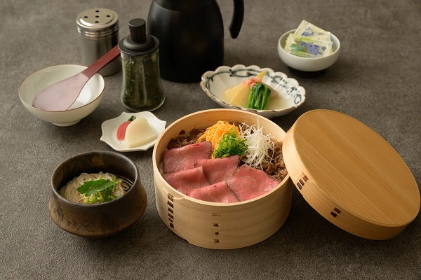 「大和牛まぶし 赤身たたき」は、ご飯の上に、部位ごとに丁寧に火入れした大和牛を贅沢にのせたメニュー。そのまま、薬味を添えて、だしをかけて。三度楽しめる“ひつまぶし”スタイルで味わってみて。とくに赤身は、大和牛の持ち味でもあるやわらかさと旨みが際立つという。価格は2,420円だ。