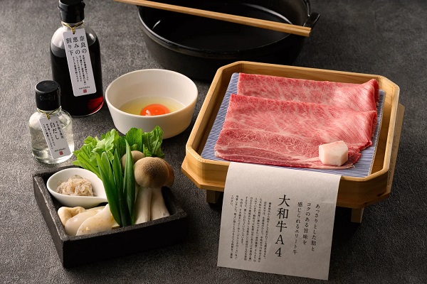 「大和牛上すき焼き」は、大和牛をはじめとする奈良スター食材を集めた贅沢なすき焼き。日本のごちそう「すき焼き」で、特別なひとときを気軽に楽しんでみて。価格は、120gが4,980円、180gが6,280円、240gが7,380円だ。