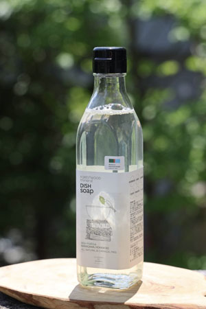 ラレシーブオーバンブーとのコラボ商品「フォレストウッドミネラル・ディッシュソープ(中川町和ハッカ)」285mL/1,584円は、薪暖炉の灰由来の抽出液と純石けんで作った合成成分を使用しない台所用洗剤。香りには、中川町産の希少な和ハッカを配合。油汚れを落としつつ泡切れが良く、手肌と環境にやさしい洗剤となっている。