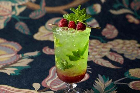 そのままでも美味な甘酸っぱいピューレを、下からすくって味わい、少しずつ混ぜることで異なる表情が楽しめる、モヒートのツイストです。