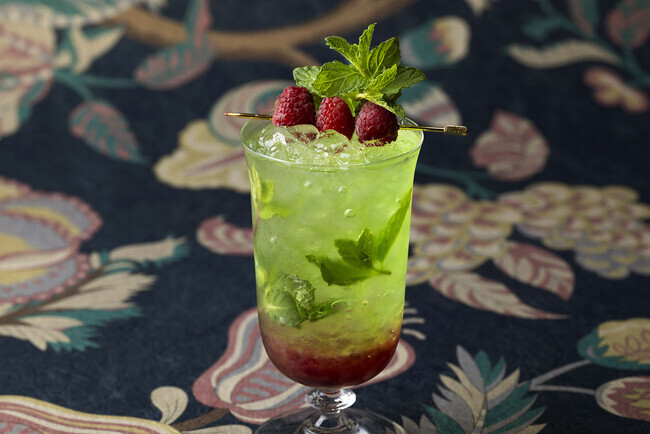 今年開業110周年を迎える東京ステーションホテル(所在地:東京都千代田区丸の内1-9-1)は、アニバーサリーイヤーを通じて英国老舗ファブリックブランドの「LIBERTY(リバティ)」とコラボレーションし、様々なプロモーションを展開しています。中でも日本初の試みとなったコンセプトルームは、本国のデザイナーチームによってコーディネートされたHERA(ヘラ)とJADE(ジェイド)という、2部屋だけのエクスクルーシブルーム。今回、バー&カフェ カメリアでは、この2部屋のデザインにインスパイアされたカクテルを考案しました。秋田から取り寄せた旬のフレッシュラズベリーを使い、2種類のカクテルを8月15日(金)よりご用意いたします。また特典として110周年を記念したロゴ入りのオリジナルミラーをもれなくプレゼント。カクテルはノンアルコールでもご用意。お酒を飲まない方も、控えたい日も、いつでもLIBERTYカクテルをお楽しみいただけます。