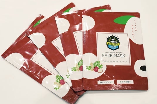 このたび、新富町をホームタウンとする女子サッカーチーム「ヴィアマテラス宮崎」とのコラボレーションにより、スポーツを軸とした地域活性化や交流人口の拡大、町の魅力発信を目的とした特産品「ヴィアマテラス宮崎フェイスマスク」を開発いたしました。