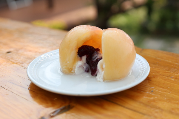 桃の中にはブルーベリージャムとさっぱりヨーグルト