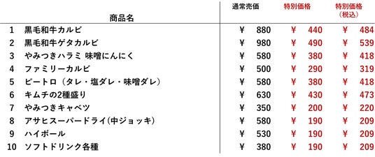 ・内容 :人気商品10品が、期間中何皿注文しても特別価格