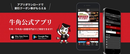 牛角のキャンペーン情報の他、公式アプリ限定クーポンなどを配信しております。