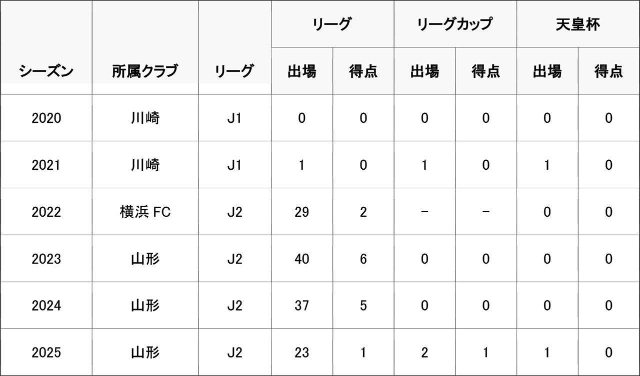 天皇杯通算 4試合出場1得点※桐蔭横浜大学在籍時の出場試合も含む