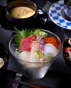 その名の通り、五島近海で獲れた新鮮な海の幸を、彩り豊かに盛り付けた華やかな丼御膳