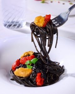 五島雲丹が乗ったイカスミパスタ