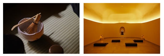 ホテル内の「メディテーションルーム」で、宿泊者限定の茶会「A Bowl of Stillness」を2025年の6月より定期開催しています。静けさに包まれた空間で、茶人・中山福太朗氏が選んだ京都の抹茶とお茶菓子、若手作家による清水焼の茶碗を通して、土地の記憶に触れるひとときをお楽しみいただけます。