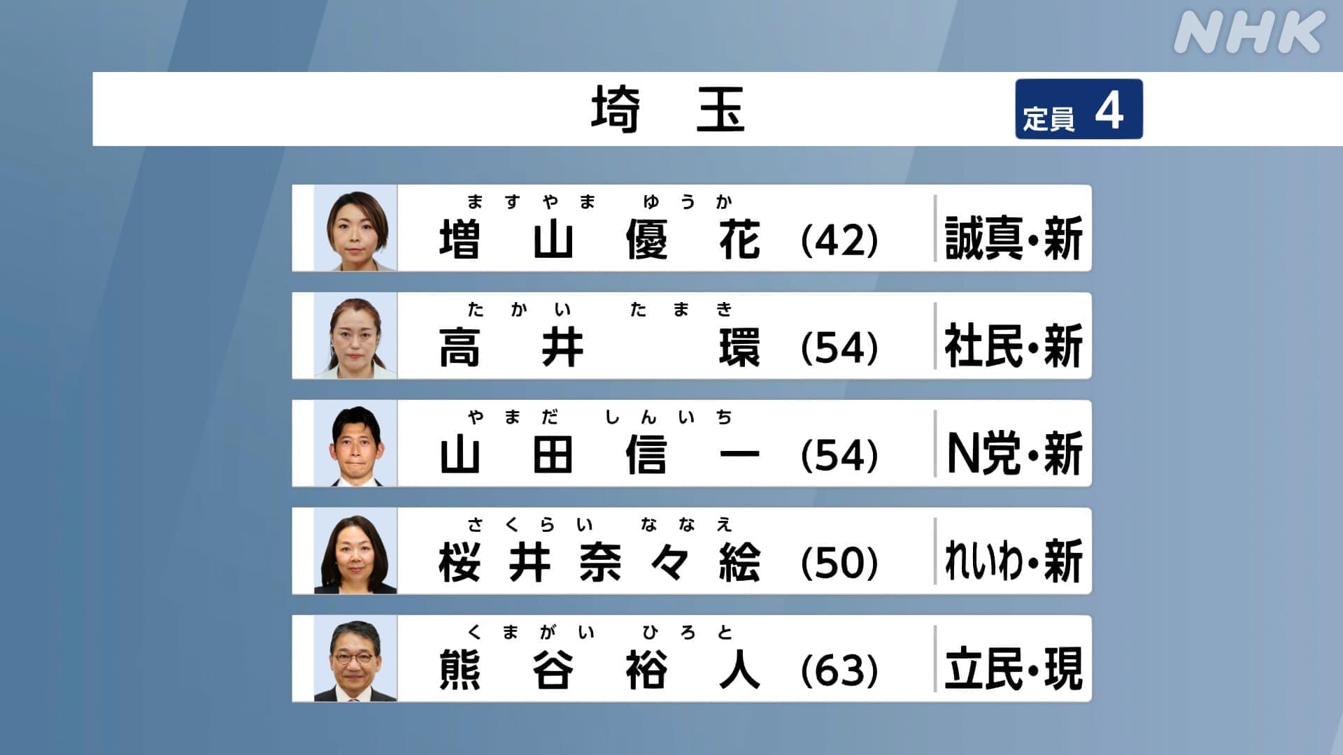 参議院選挙、埼玉選挙区には定員4人に対し、15人が立候補しました。開票状況を随時更新しながらお伝えします。