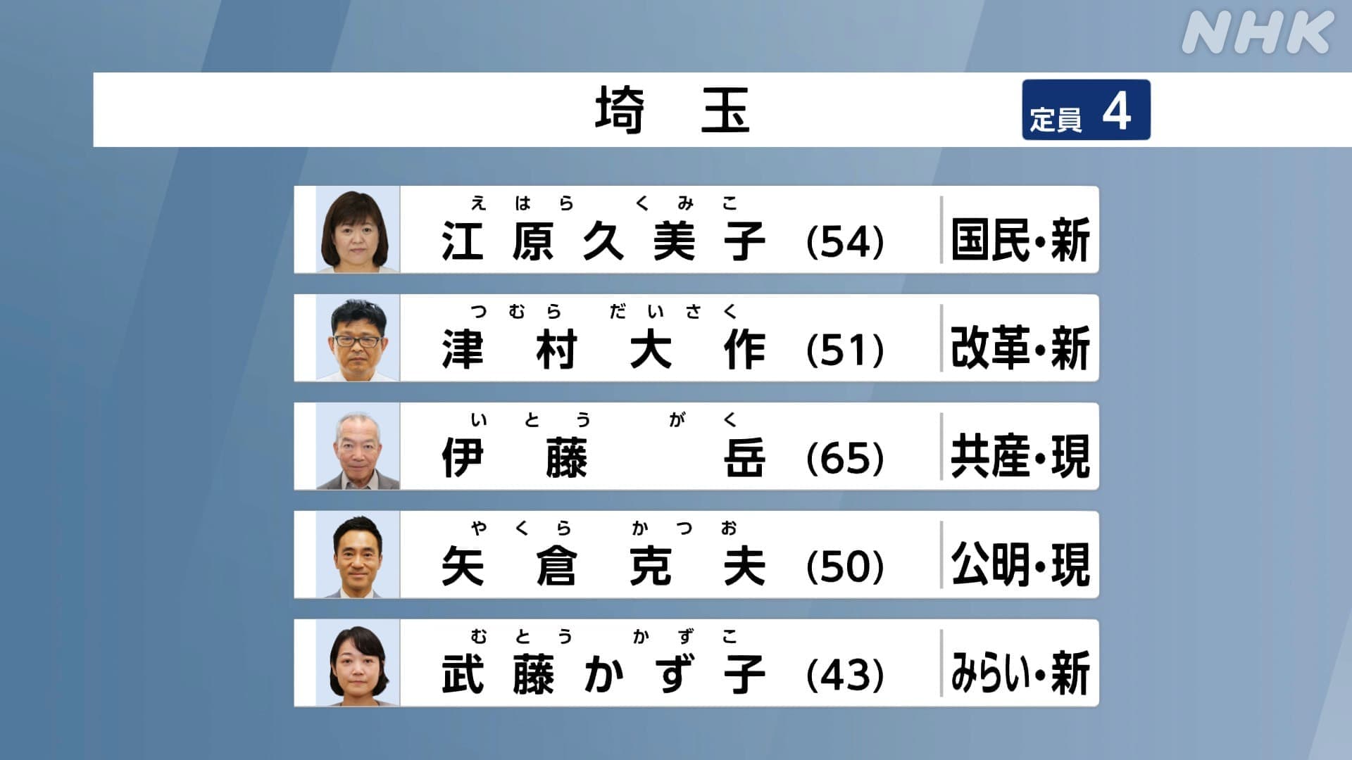 埼玉選挙区では、国民民主党の新人の江原久美子さんが初めての当選を確実にしました。