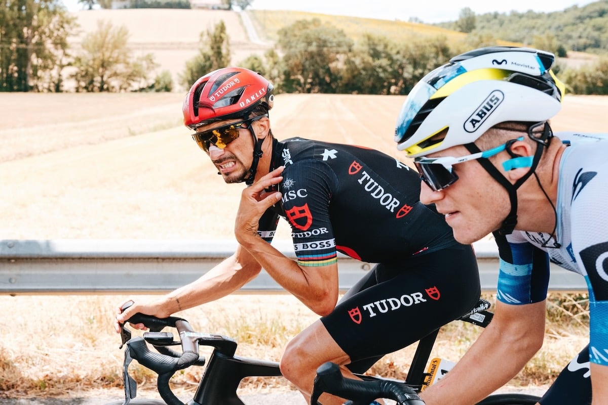 今大会を象徴する混沌とした展開は、この日もスタート直後から始まった。激しいアタック合戦の中からニールソン・パウレス(アメリカ、EFエデュケーション・イージーポスト)が単独で飛び出す一方、メイン集団では道幅の狭い直線区間で落車が発生。ジュリアン・アラフィリップ(フランス、チューダー・プロサイクリング)やマイヨブラン(ヤングライダー賞ジャージ)を着るフロリアン・リポヴィッツ(ドイツ、レッドブル・ボーラ・ハンスグローエ)などが巻き込まれたが、幸いリタイア者なくレースは続行された。