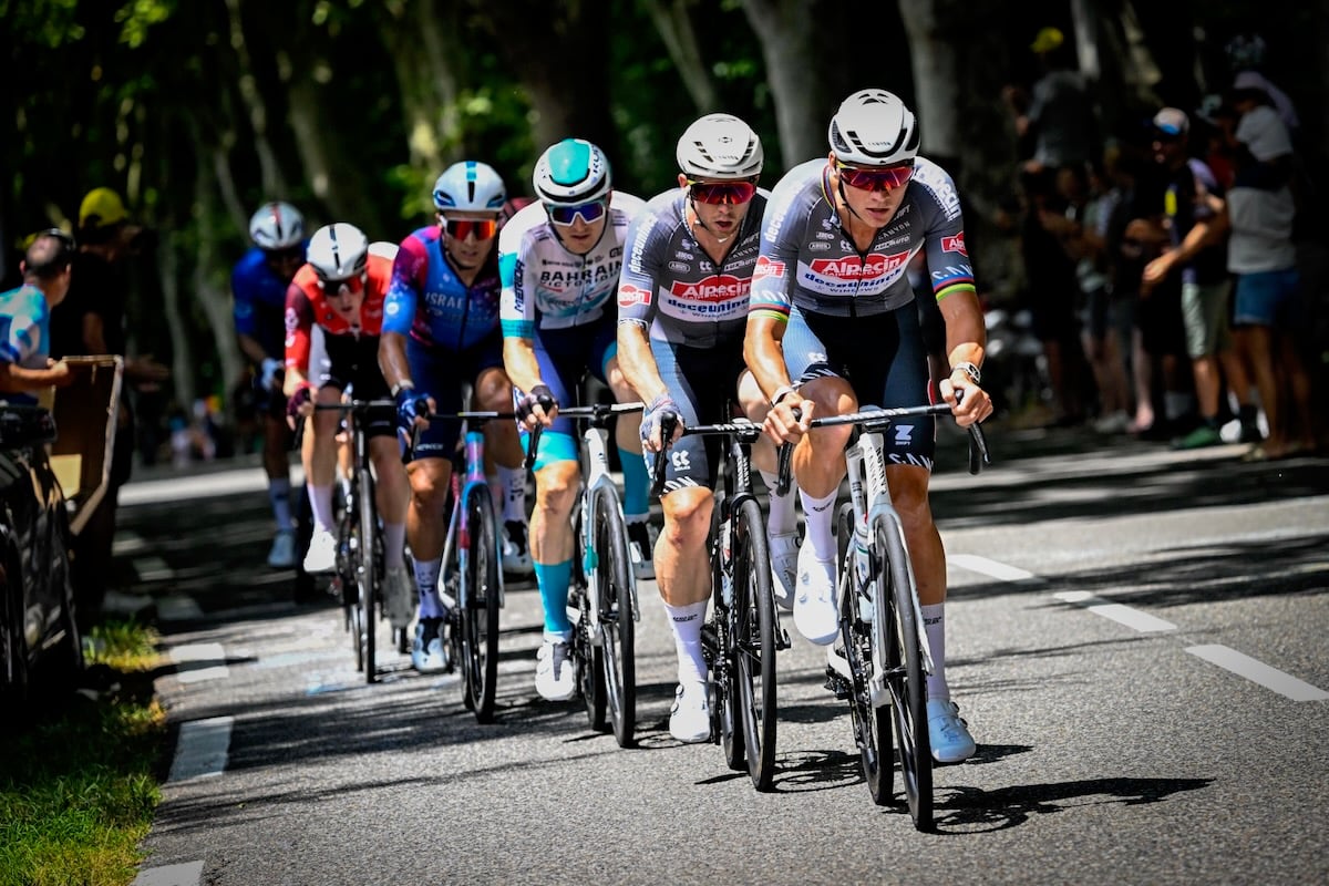 残り109.5kmの中間スプリントをファンデルプールが先頭で通過する頃、強力な15名の逃げ集団が形成される。その中には、ヴィスマ・リースアバイクからワウト・ファンアールトとヴィクトル・カンペナールツ(共にベルギー)が入り、対するUAEチームエミレーツXRGはティム・ウェレンス(ベルギー)が乗る。さらにアルペシン・ドゥクーニンクはファンデルプールとカーデン・グローブス(オーストラリア)と、各チームが力のある選手を送り込んだ。