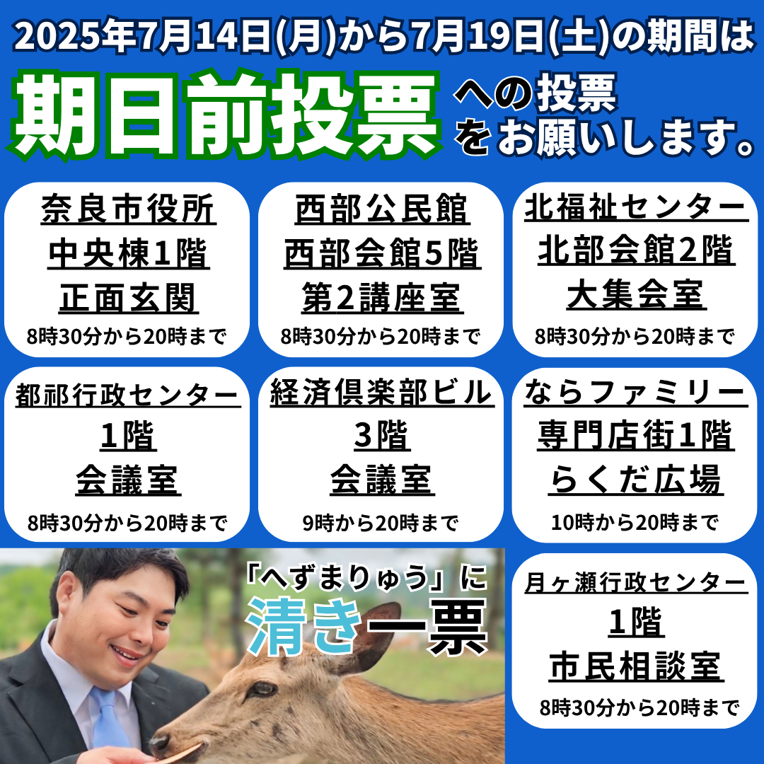 奈良市議会議員選挙2025の候補者。34歳。外国人から鹿さんと市民を守る!無所属新人のへずまりゅうです。奈良市議会議員選挙2025に立候補しました。