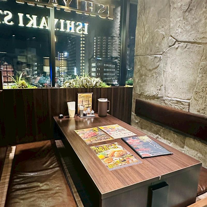 窓際の座敷席からは富山駅前が一望できます✨️この夜景でご褒美ディナー感が増しますね🤩座敷席も掘りごたつ式で快適😊テーブル席もあります!