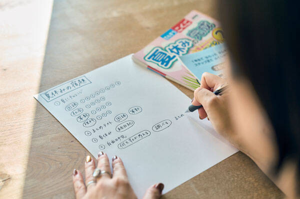 家族全員が幸せに過ごすためには、夏休みは大変! と考えるのではなく、まずは、「やらなければならないこと」と「やりたいこと」を明確にして、共有することが大切。そこで我が家がとりいれているのが「宿題の可視化」と「行きたいところリスト」の作成です。これは夏休み初日の恒例行事になっていて、S N Sでの投稿にもたくさんの反響をいただきました。