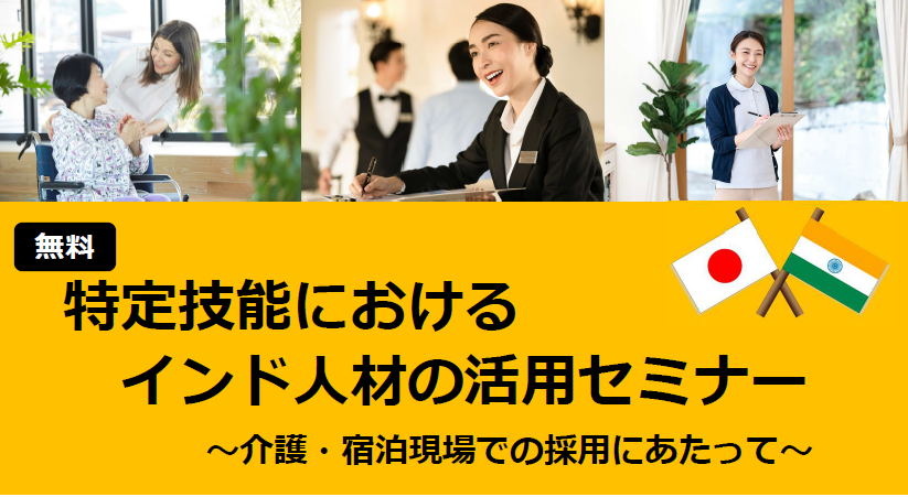 本セミナーでは、介護や宿泊分野における特定技能制度の最新情報や、インド人材が注目されている理由、実際の入職事例などをご紹介します。外国人材の採用を検討している企業や団体の担当者の方は、ぜひご参加ください。