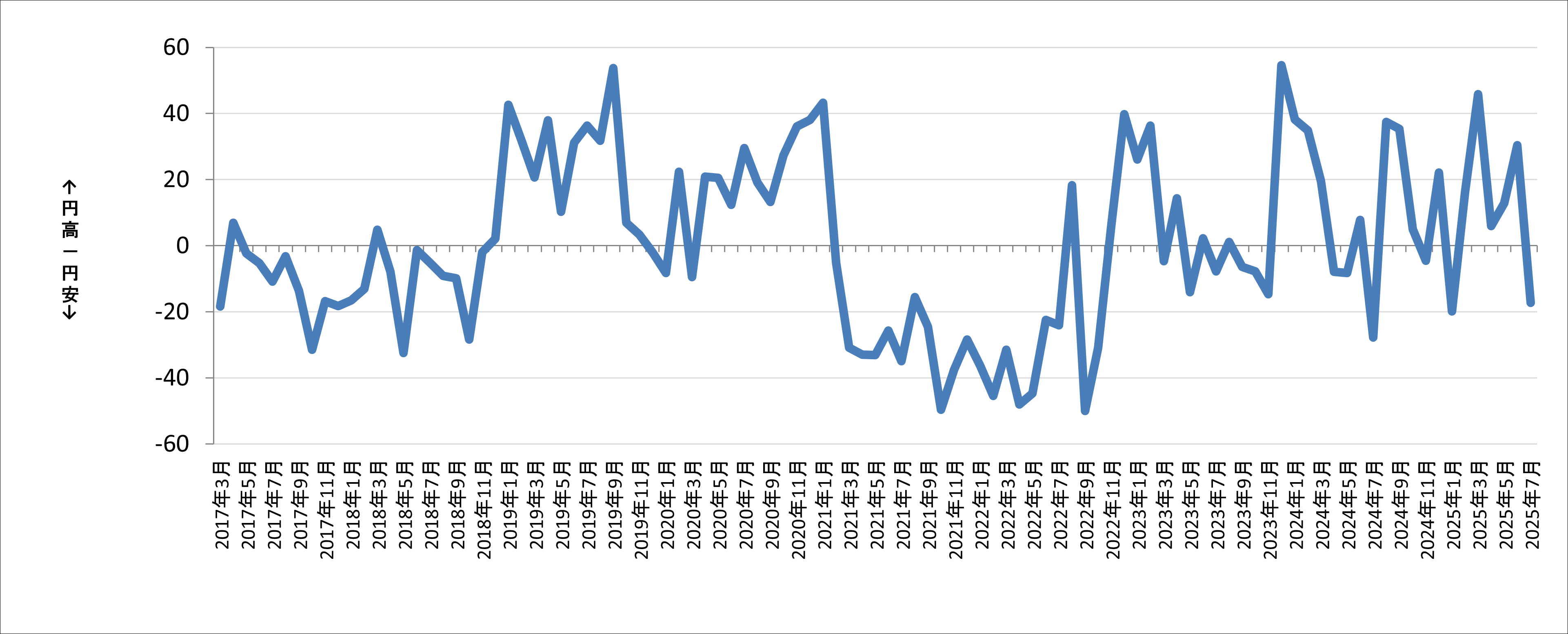■ドル円DI推移(※ドル円DI=円高ー円安)