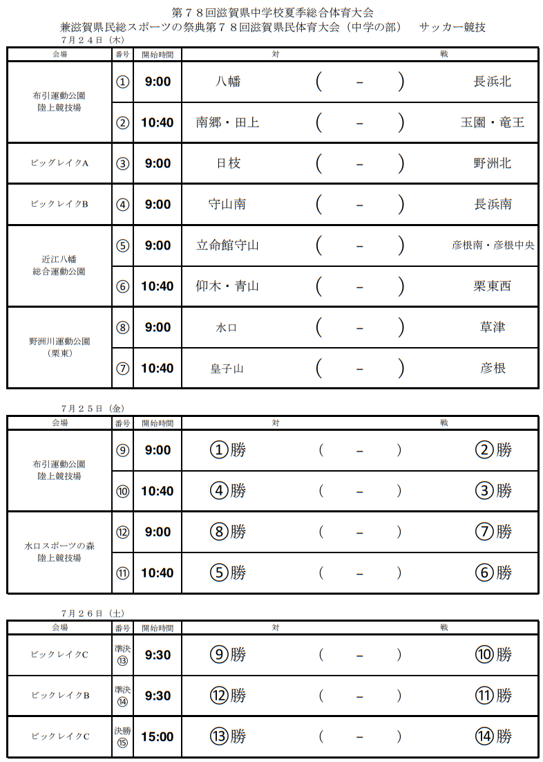 2025年度第78回 滋賀県中学校夏季総合体育大会 兼 滋賀県民総スポーツの祭典 第76回滋賀県民体育大会(中学の部)サッカー競技
