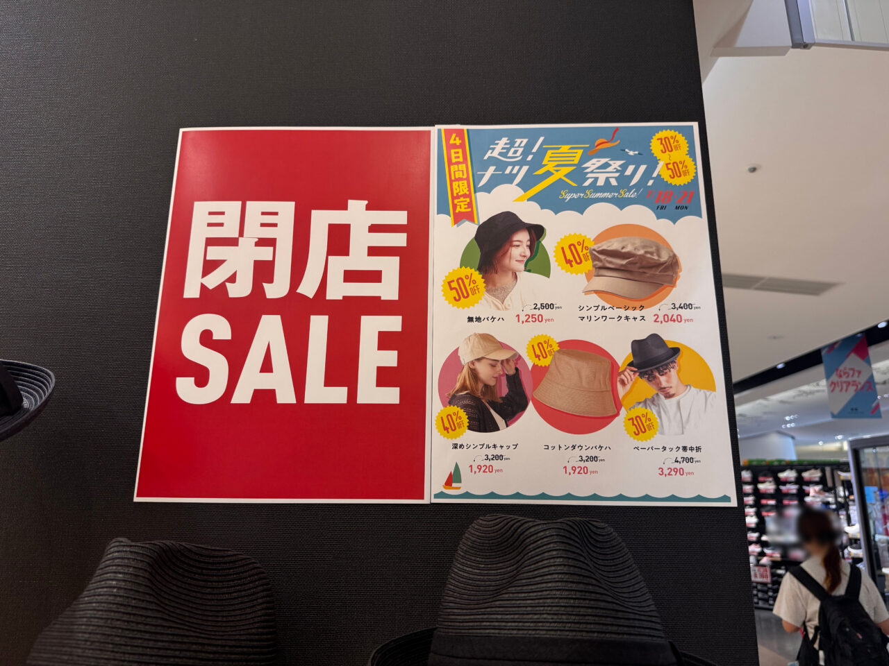 同場所は、「帽子屋 Flava」に続いての閉店となってしまい、非常に残念ですが、また次のテナントに期待したいですね。