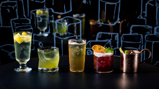 左から:「博多レモンサワー」「八女茶割り」「ルイボスハイボール」「サングリア」「モスコミュール」