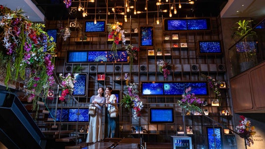 夏季限定のフラワーアートで飾られたラウンジ
