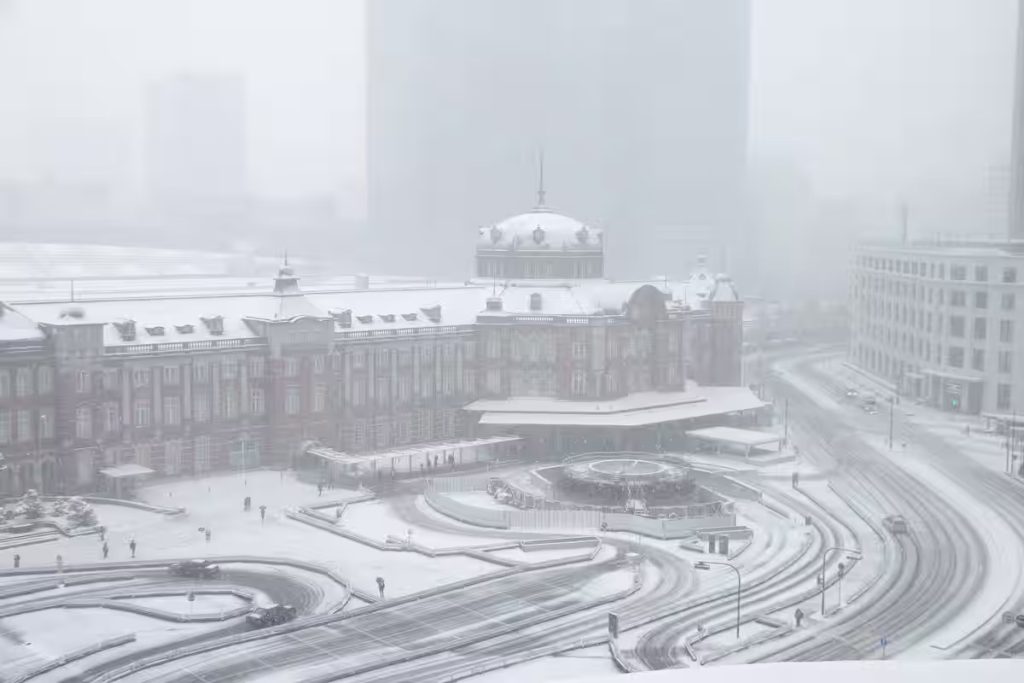 珍しい雪景色の東京駅丸の内駅舎(佐々木直樹さん提供)