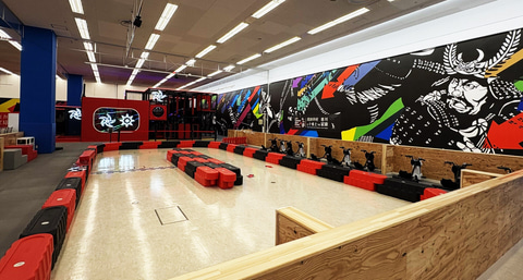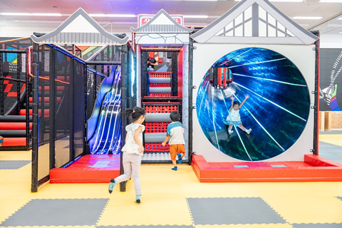 店内には「渡る、跳ぶ、ぶら下がる」などの障害物をクリアするタイプのアトラクション、スライダー、周回コースを回る電動カートのアトラクションを楽しめる「忍びの訓練」をイメージした屋内アスレチックパークが併設される。