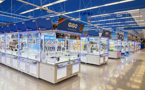 503坪の広い店内には、124台のクレーンゲームを中心に、体感音楽ゲームやキッズゲーム、プリントシール機、そして400面のカプセルトイ自販機を設置。人気キャラクター景品やGiGO限定景品など多彩なアイテムが展開される。