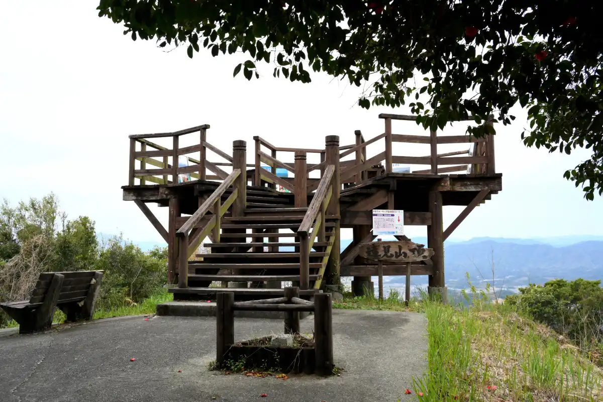 遠見半島の最先端にある標高約308mの遠見山。その山頂付近に位置する展望台からは日向灘、延岡市、日向市を見渡すことができる。