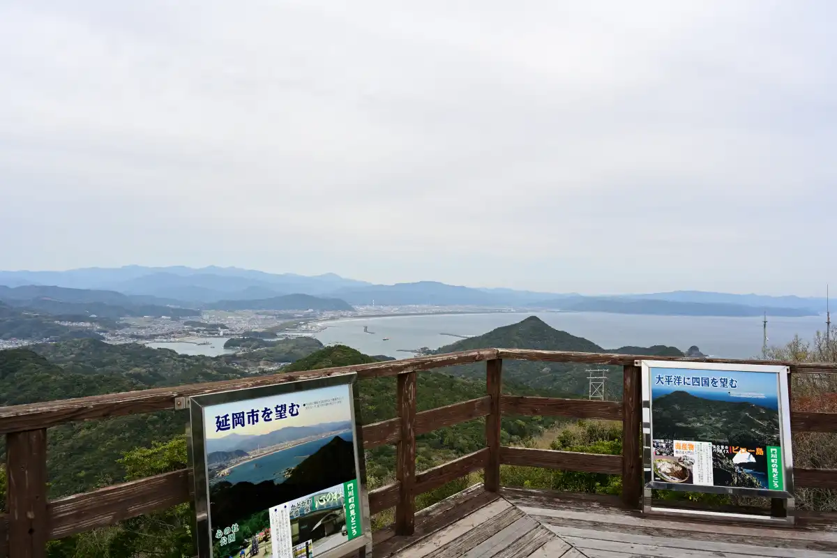 日向灘のほか、日向市や延岡市、枇榔島などが一望できる。