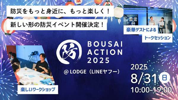 「誰一人取り残さない、新たな形の防災を作る。」というミッションのもと、防災意識向上を目指して、防災啓発活動を行っている福島県郡山市の学生団体「防災me」が、“防災をもっと身近に、もっと楽しく”をテーマにした体験型イベント「BOUSAI ACTION 2025」を、8月31日(日)にオープンコラボレーションハブ LODGE(LINEヤフー)にて開催する。