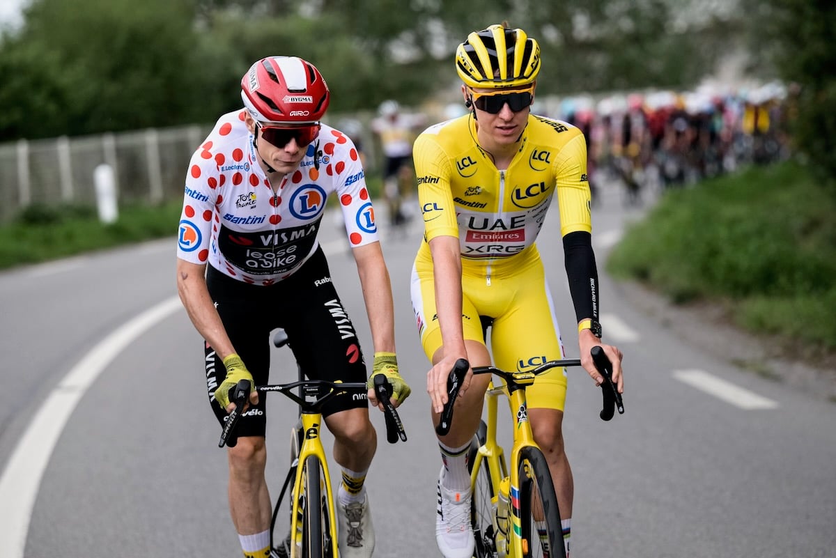 ポガチャルと言葉を交わすヨナス・ヴィンゲゴー(デンマーク、ヴィスマ・リースアバイク) photo:A.S.O.